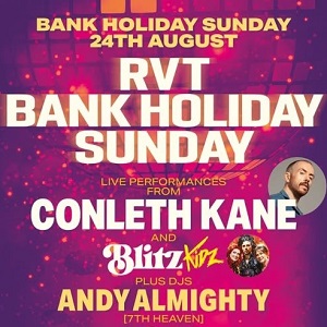 Post show, roof-raising RVT anthems and camp club classics from DJs Andy Almighty and Rob C till close. Listen out, in my set, for the first spin anywhere of the epic new 7th Heaven remix of Nicki French’s ‘Total Eclipse Of The Heart’.